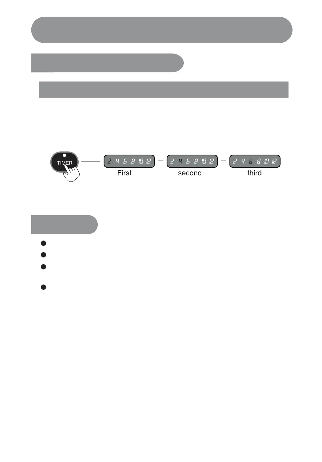 预约时间增加2小时,最长预约时间12小时。连续按预约键,预约时间从“2-4-6-8-10