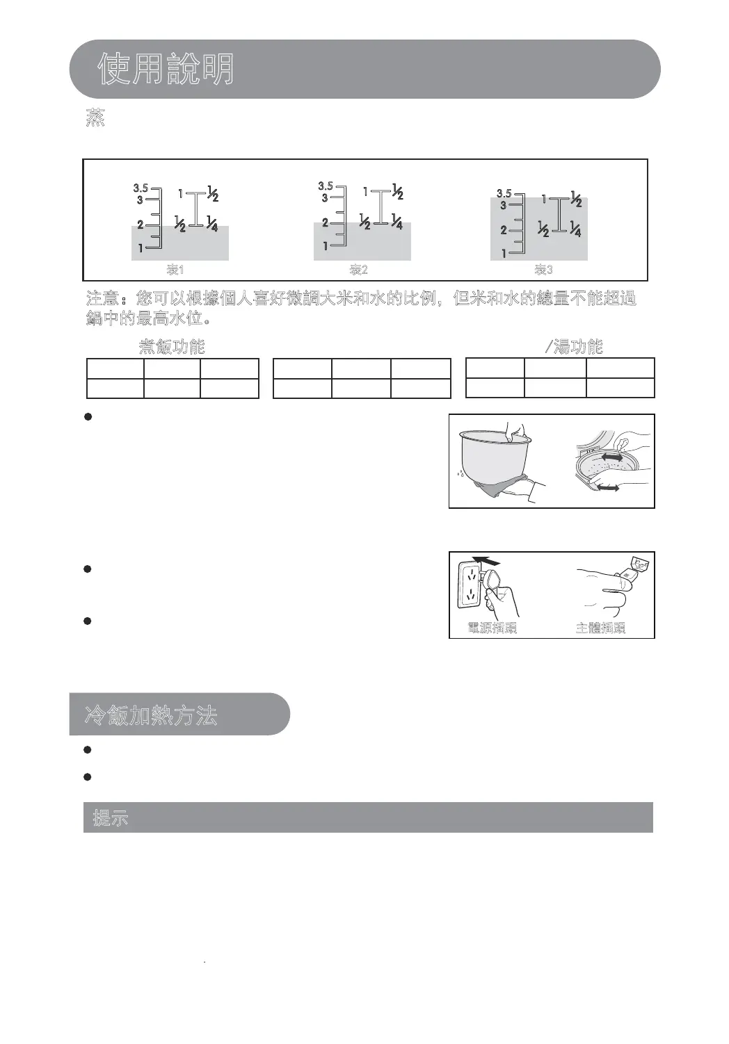 4. 過多的米飯不能被徹底熱透,米量應該在水量刻度線2以下