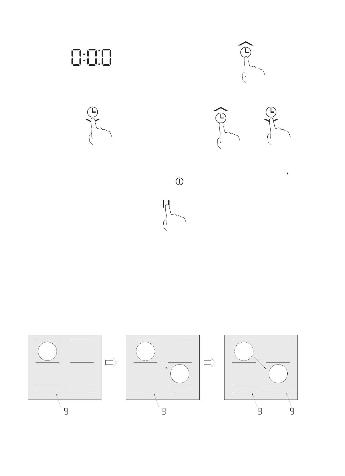 1. When the cooking zones are running, touch the “ II ” control, all the displays will show “ ” and
