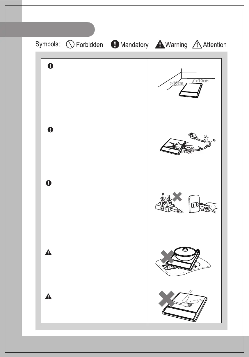 the induction cooker and the wall. Do not