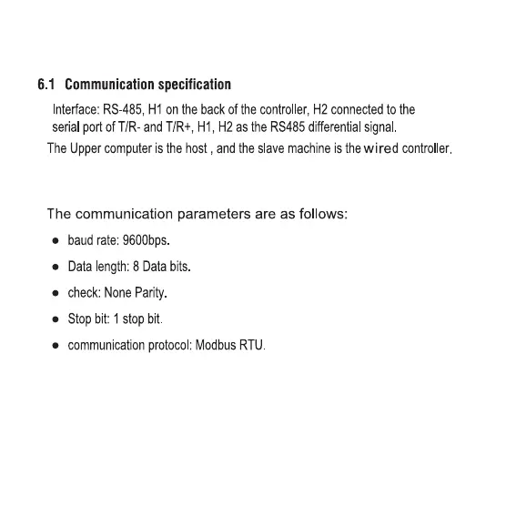 ATTACHED TABLE ABOUT MODBUS