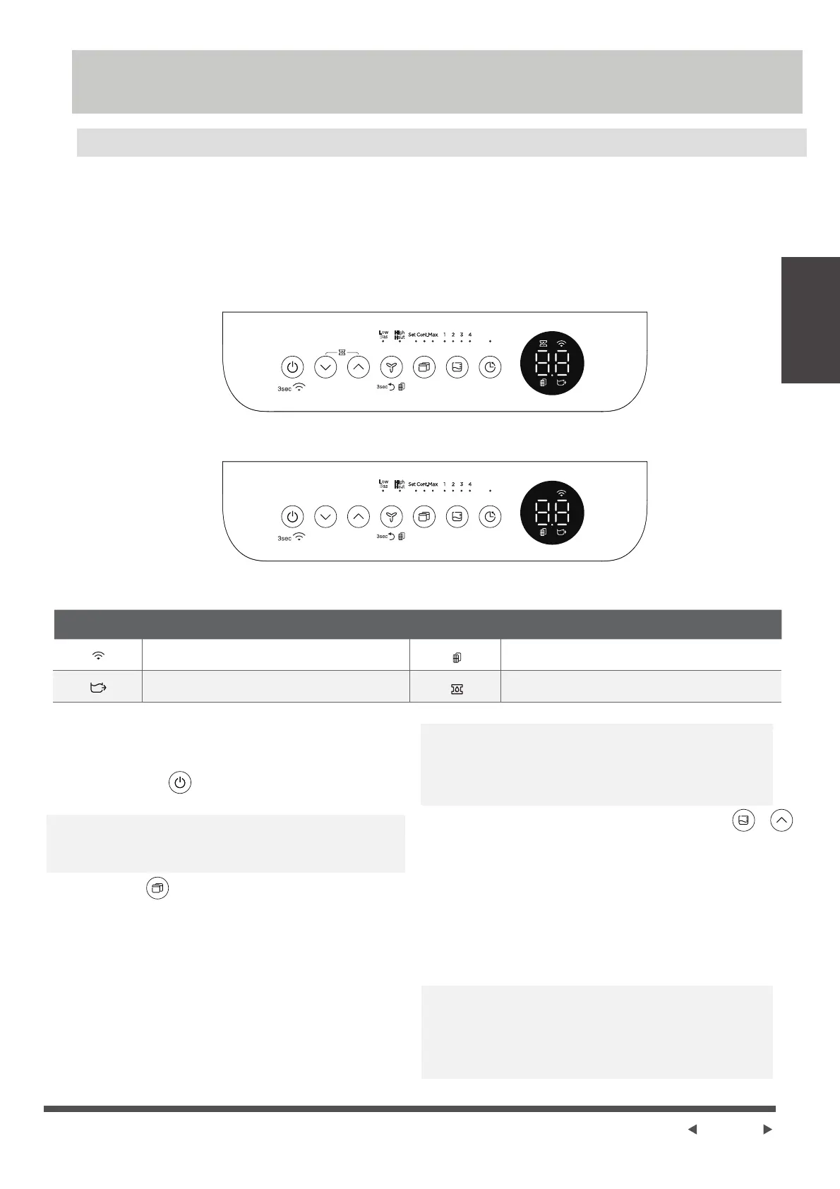Pressez le bouton mode désiré, de Déshumidification