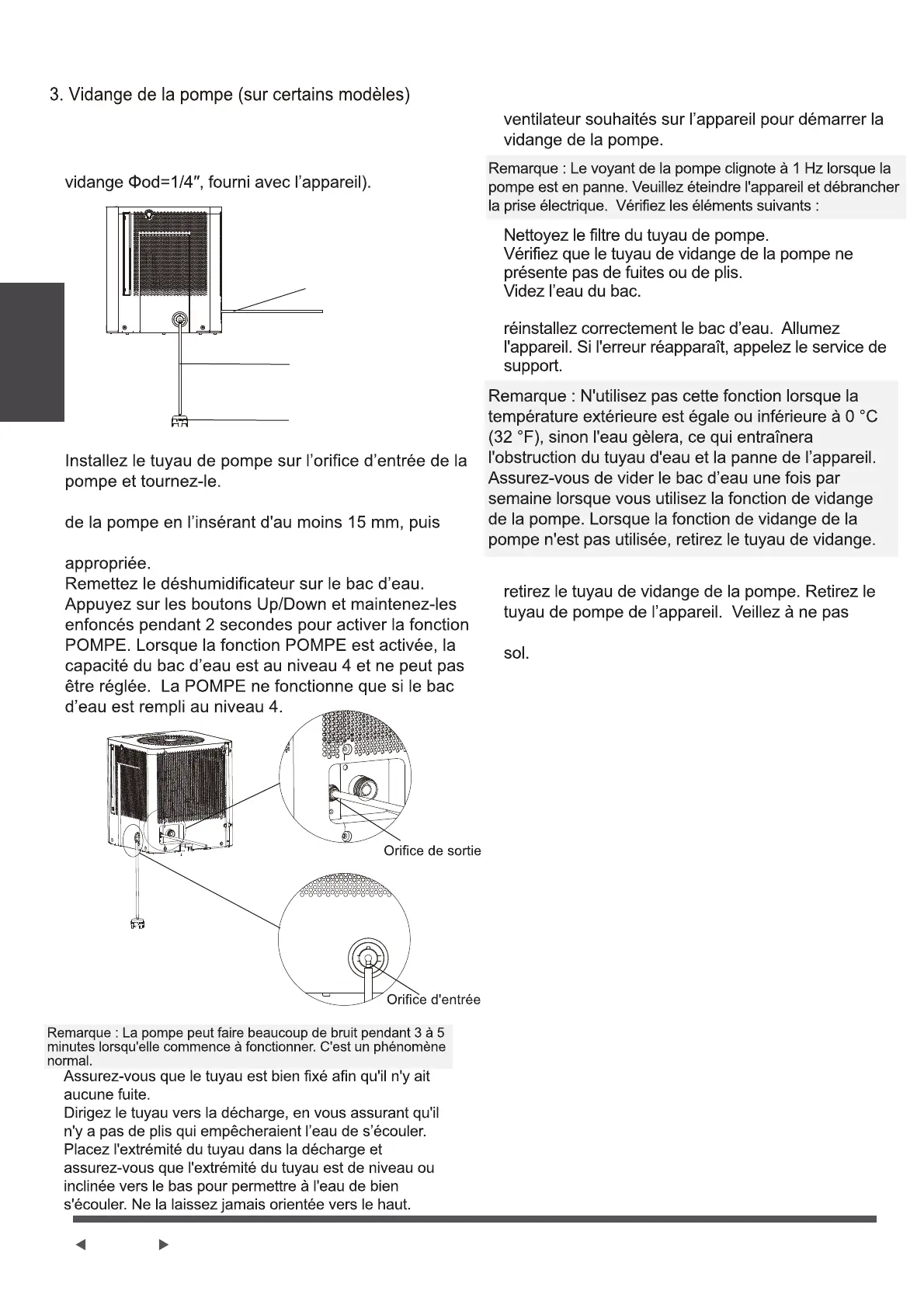 laisser l'eau du tuyau de pompe s'égoutter sur le