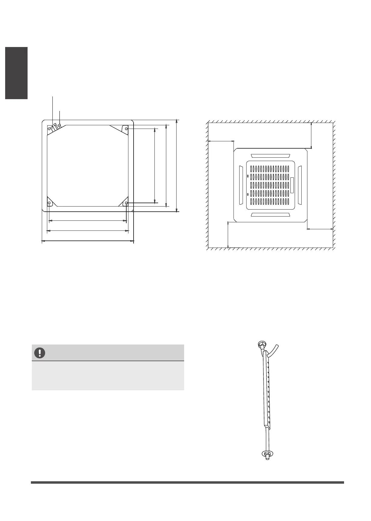on all sides. The hole will be 60x60cm (23.6x23.6”) big. Be sure to mark the areas where ceiling