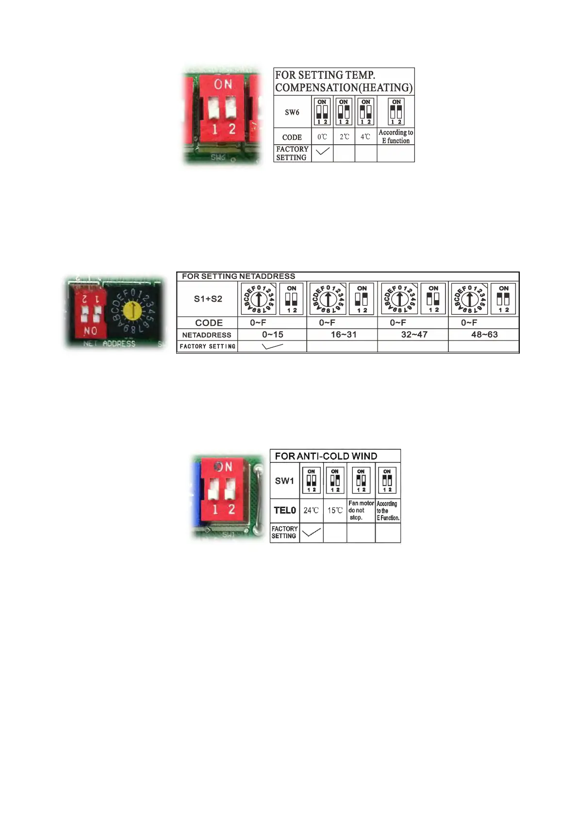 E.Micro-switch SW6 is for selection of temperature compensation in heating mode. This helps to reduce