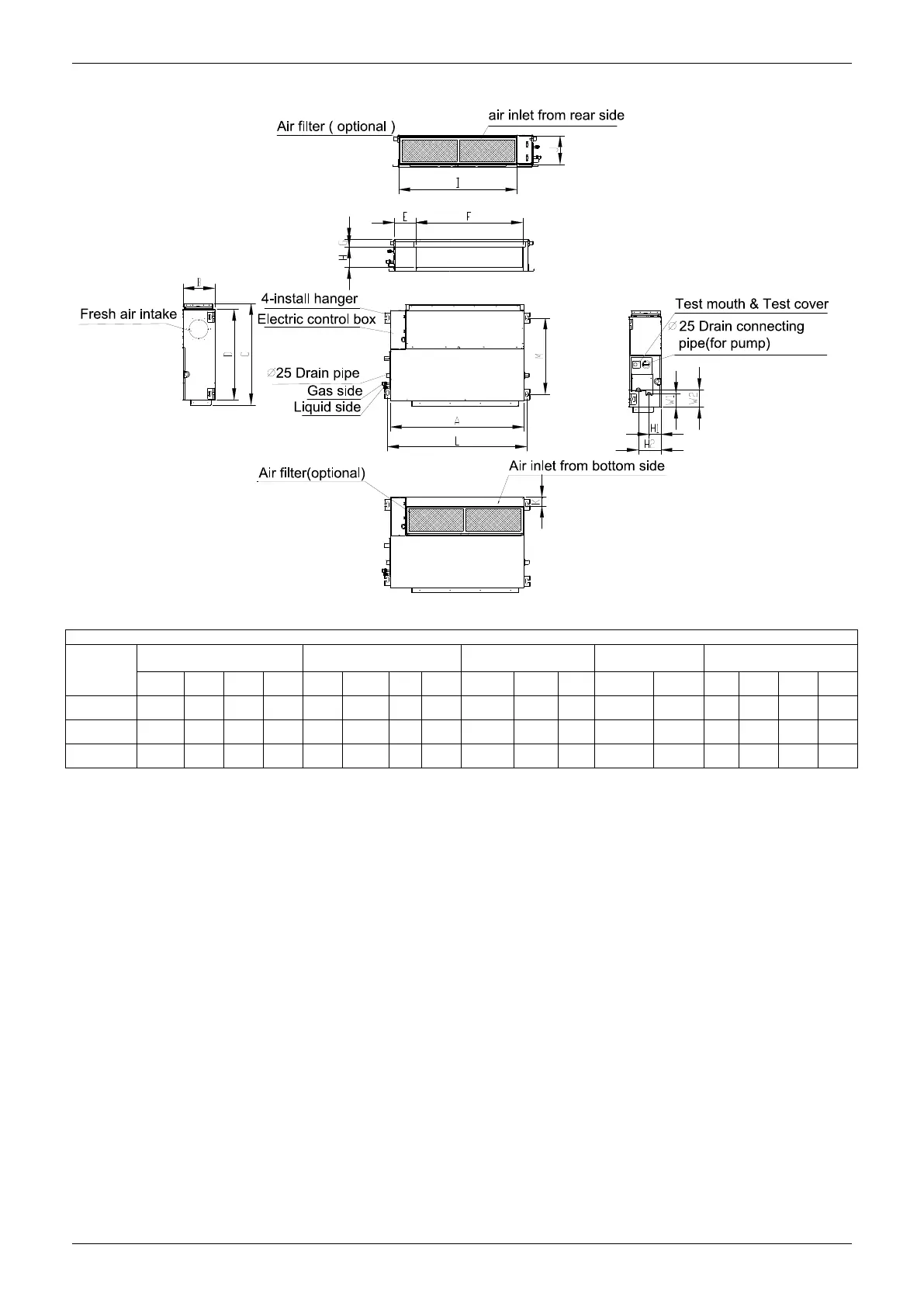 Outline dimension(mm) Air outlet opening size Air return opening size