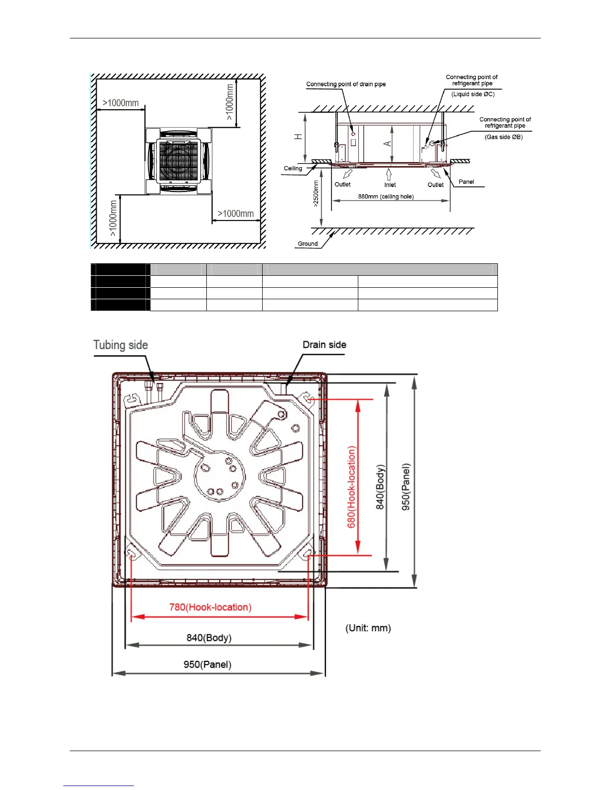 3.7.1 Service space for indoor unit