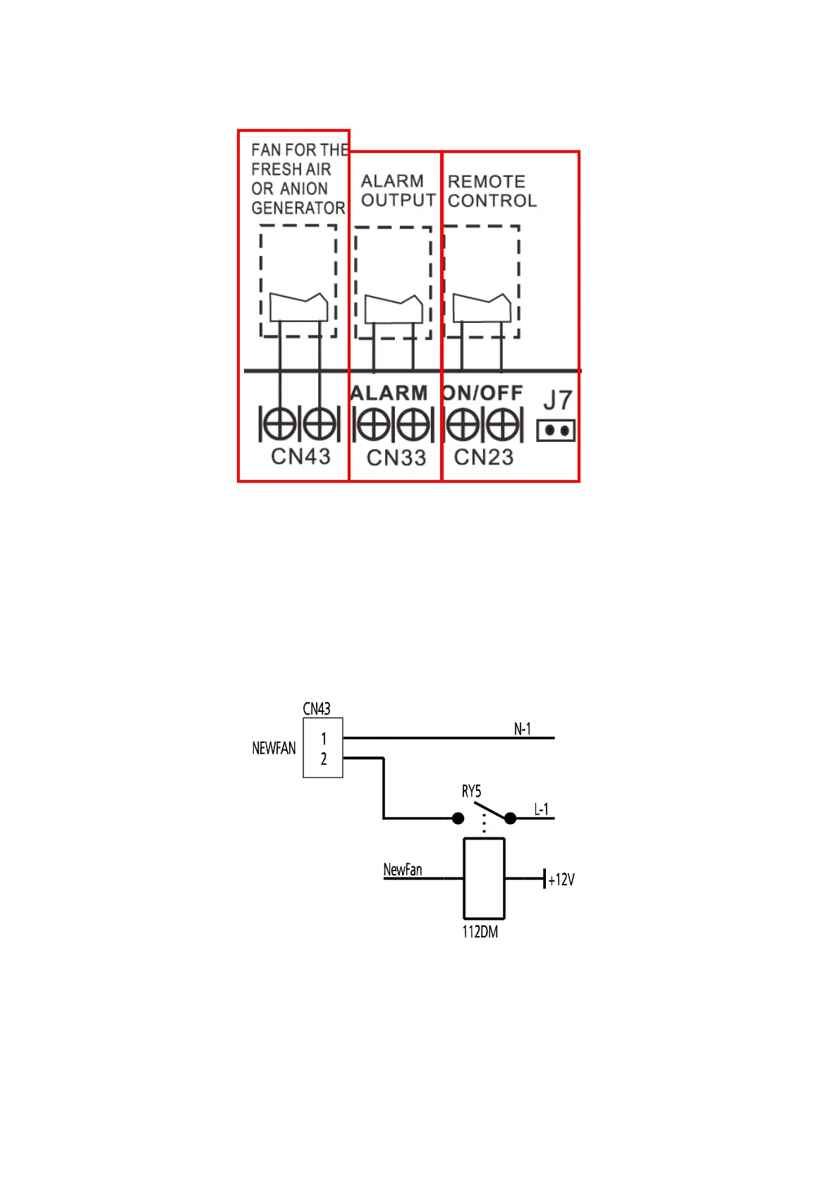 A. For new fresh motor terminal port (also for Anion generator) CN43: