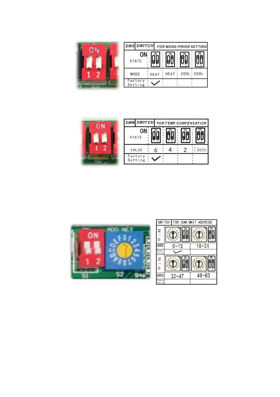 E.Micro-switch SW6 is for selection of temperature compensation in heating mode. This helps to reduce
