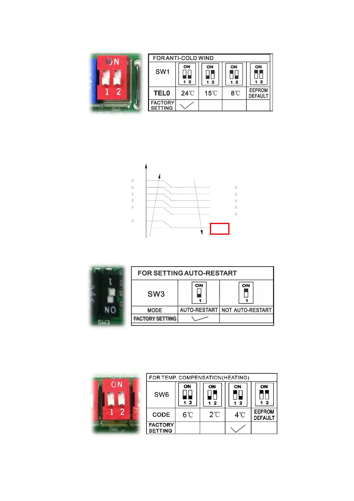 C.Micro-switch SW6 is for selection of temperature compensation in heating mode. This helps to reduce