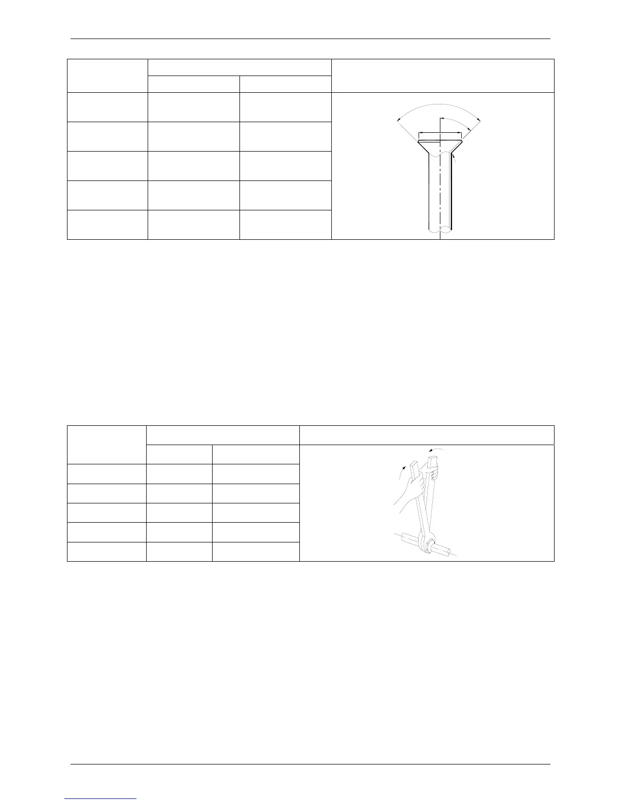 bellmouthing, and too small torque may cause leakage. Refer the following table for different pipe