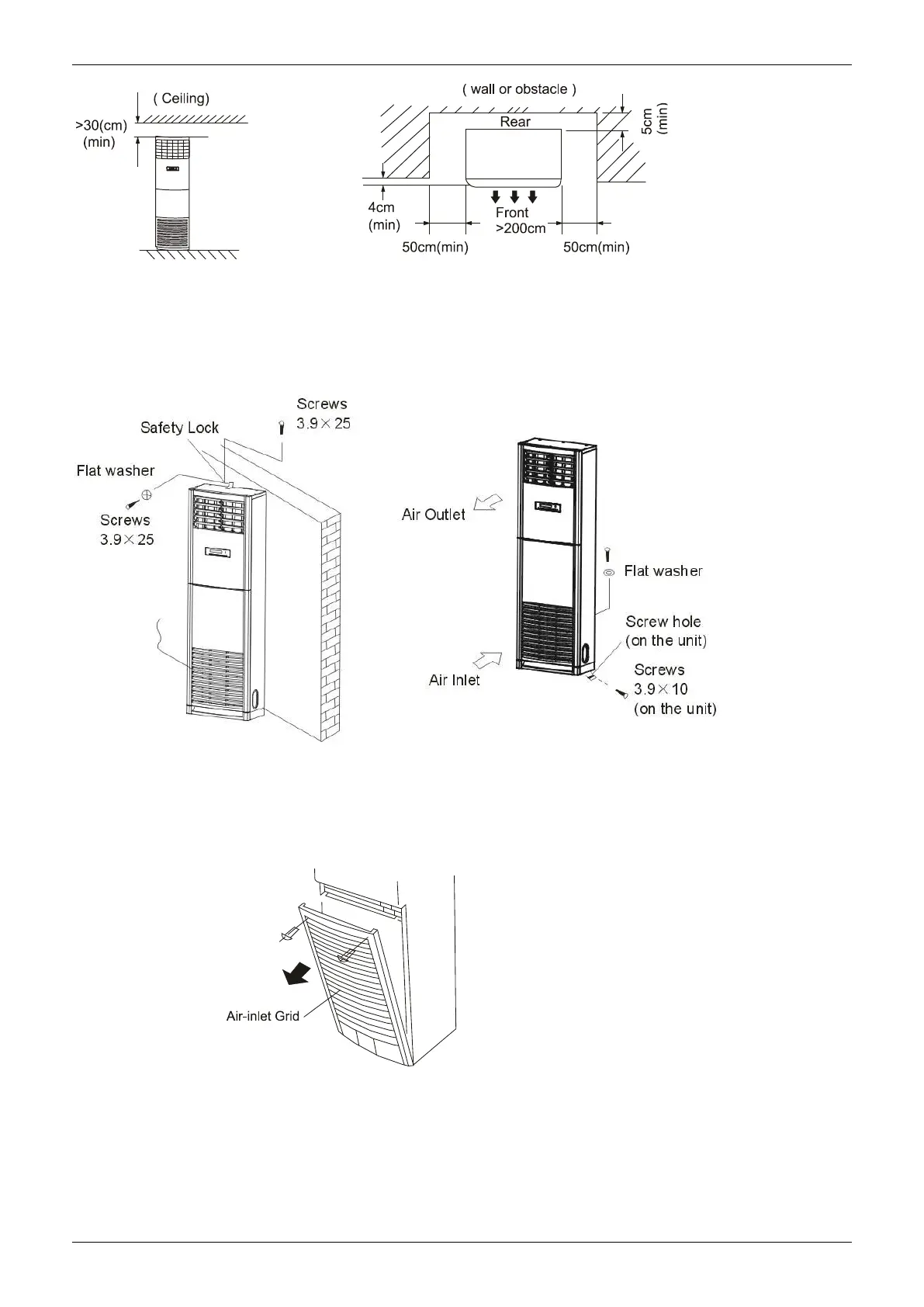Please take off the air-inlet grid before connecting the pipes/wires.