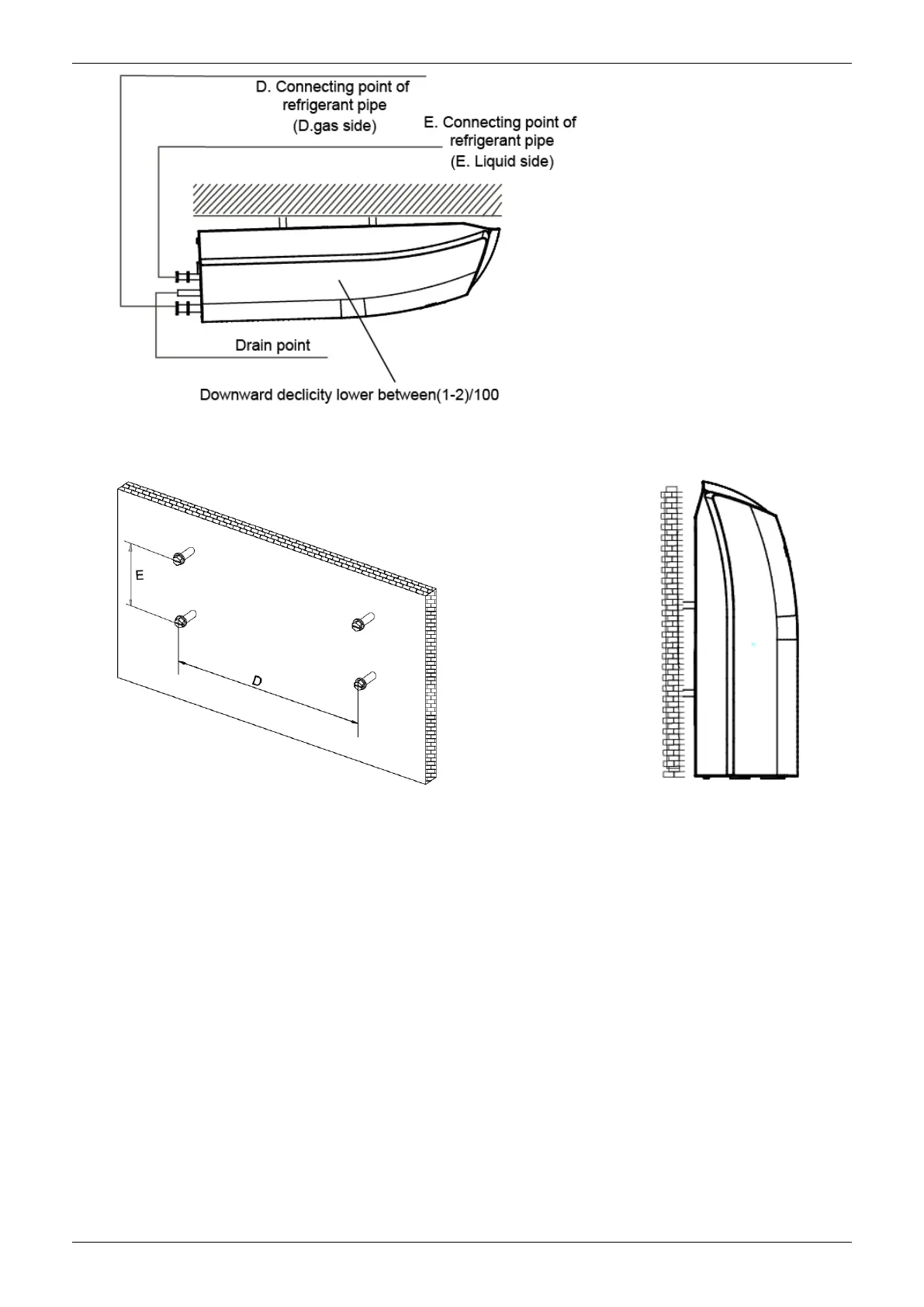 a. A place which provides the spaces around the indoor unit as required above in the diagram.