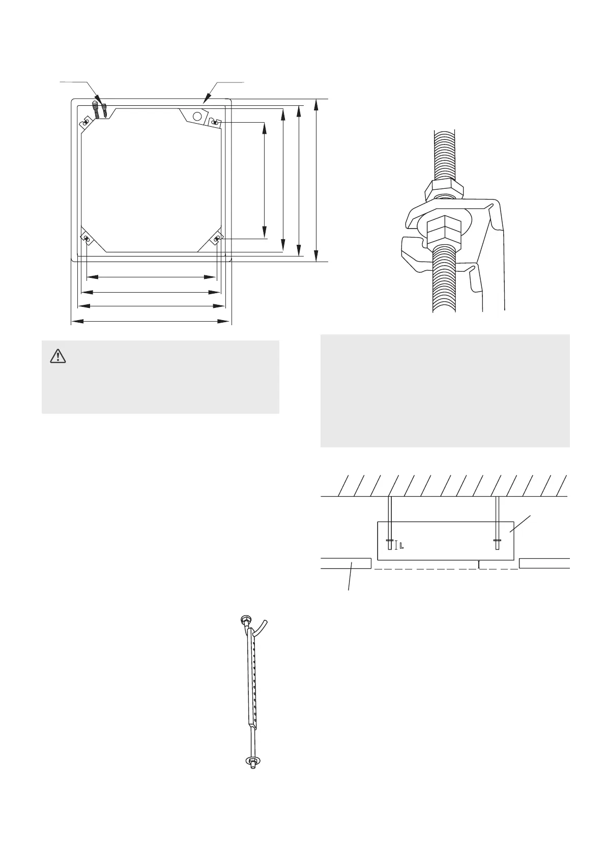 Drill 4 holes 5cm (2”) deep at the ceiling hook