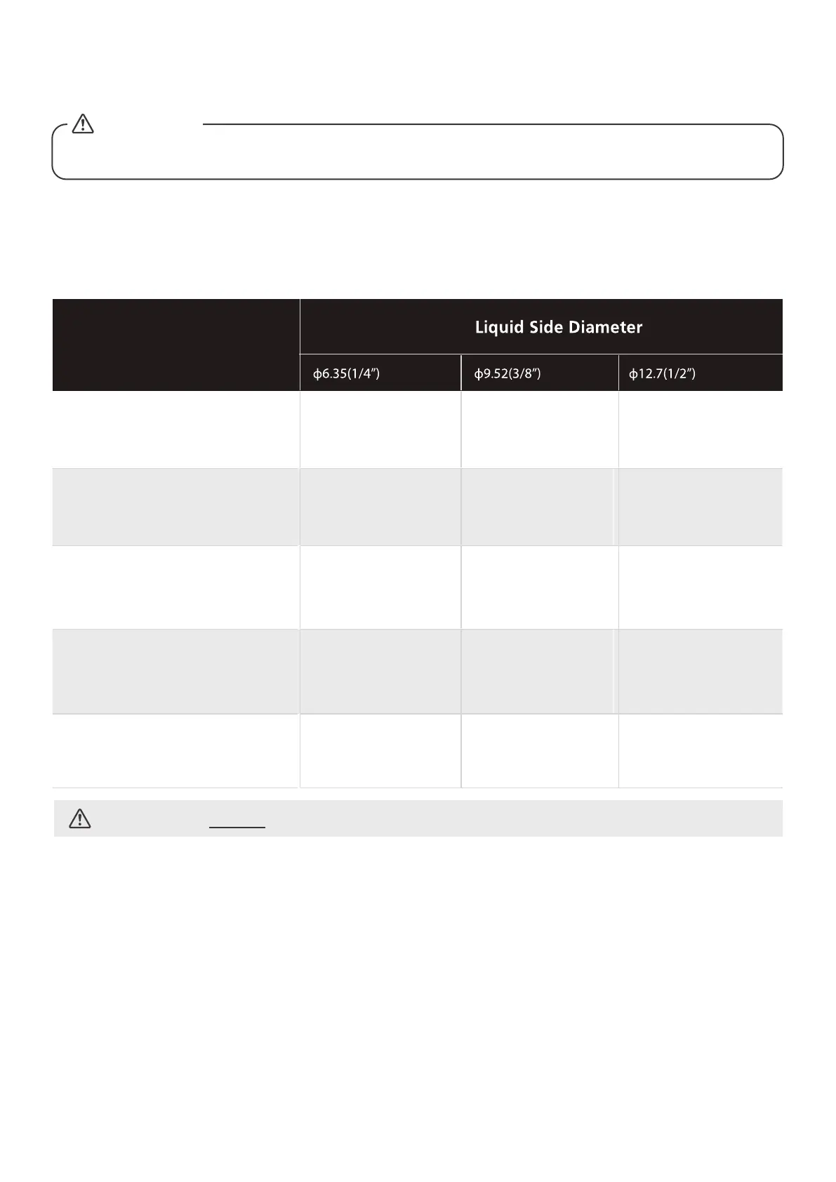 • If an existing pipe system is used, a required refrigerant charge volume will vary depending on the liquid