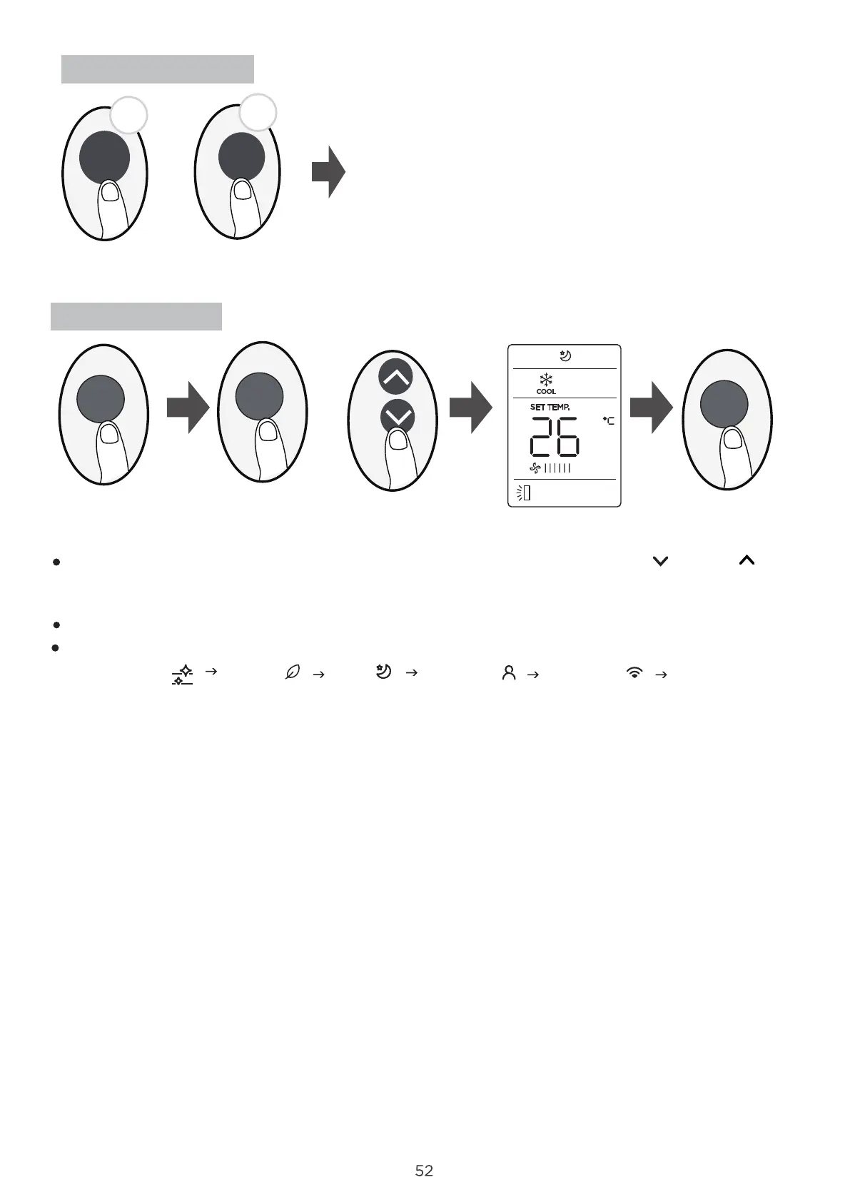 Press the SET button to enter the function setting, then press SET button or TEMP or TEMP