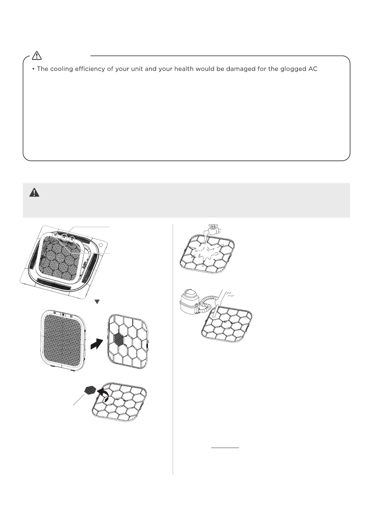 • Always TURN OFF your AC system and disconnect its power supply before cleaning or