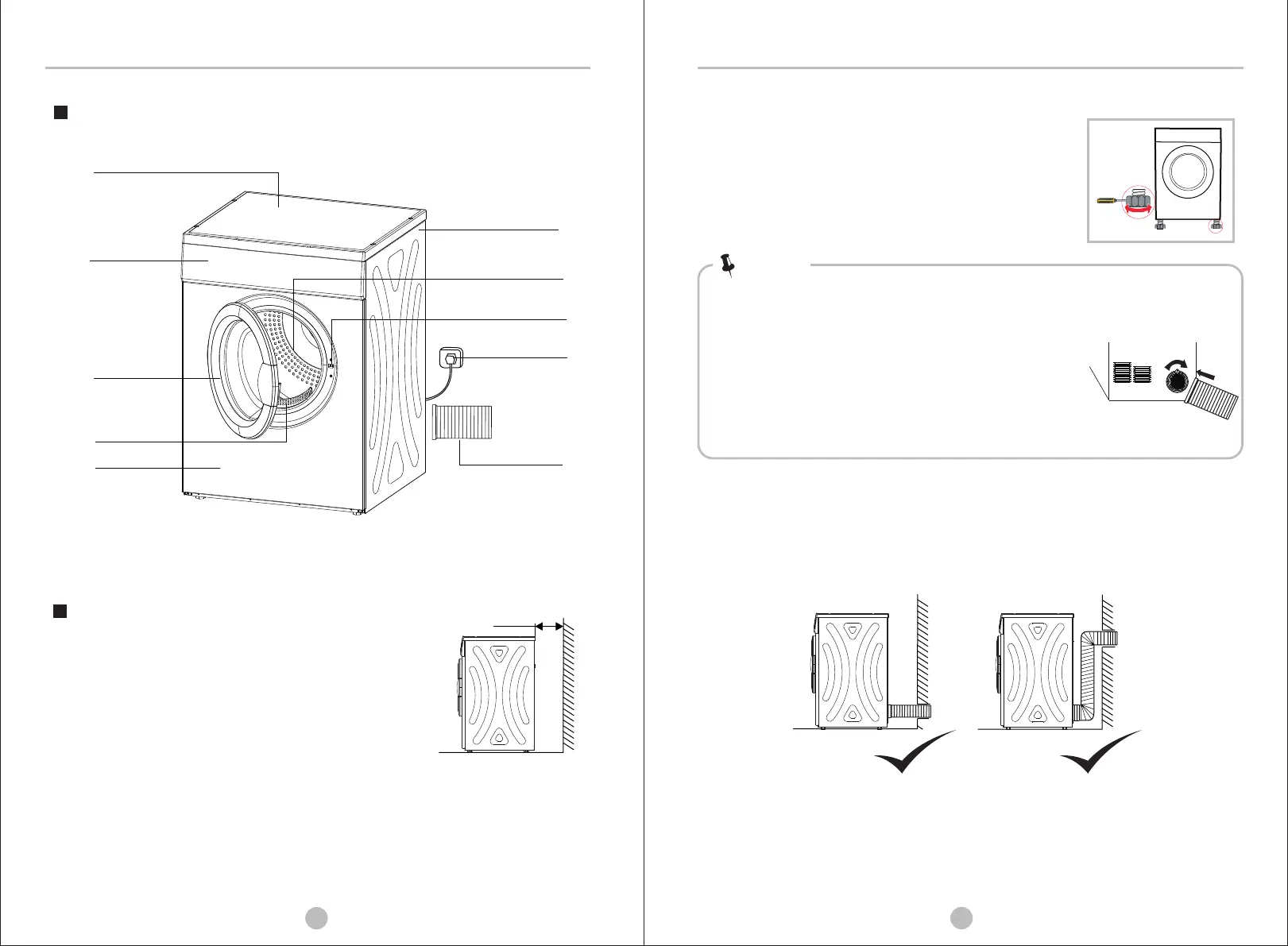 if dryer could not be placed horizontally (the lean angle is no more than 2°,