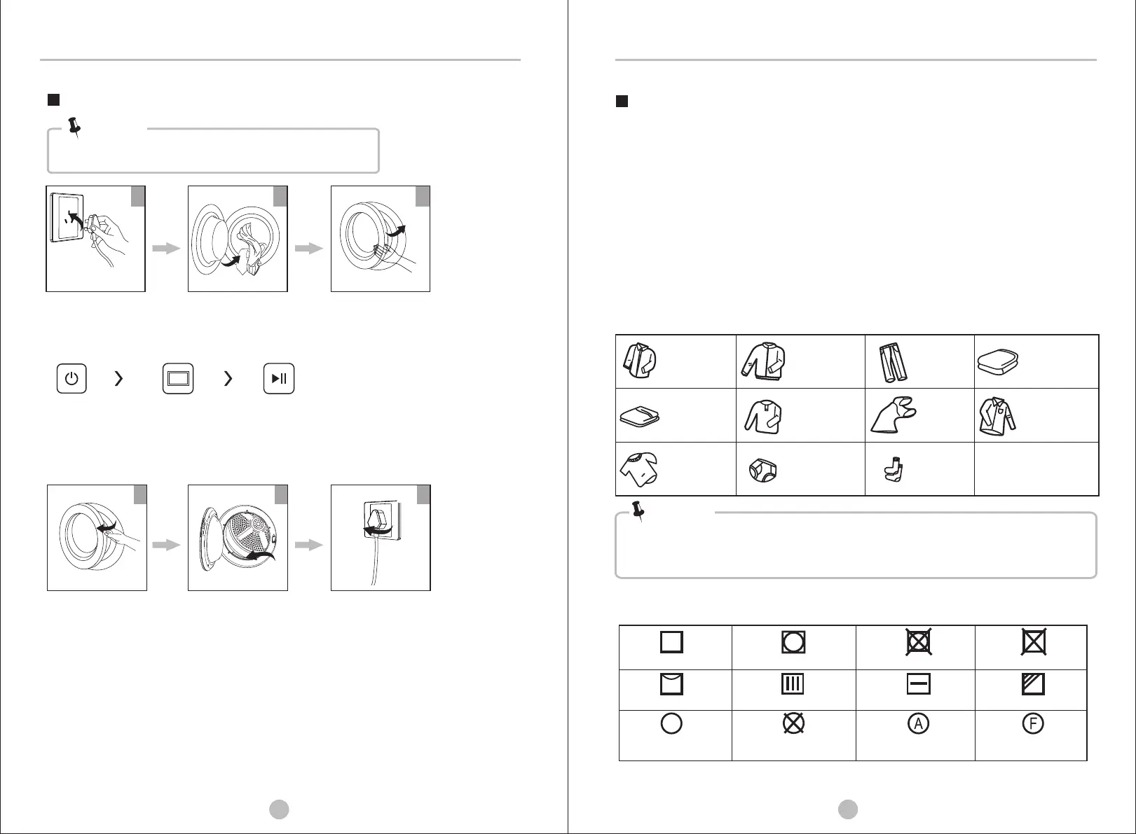 • Not for textile with dropping water. The dryer could be damaged, even fire.