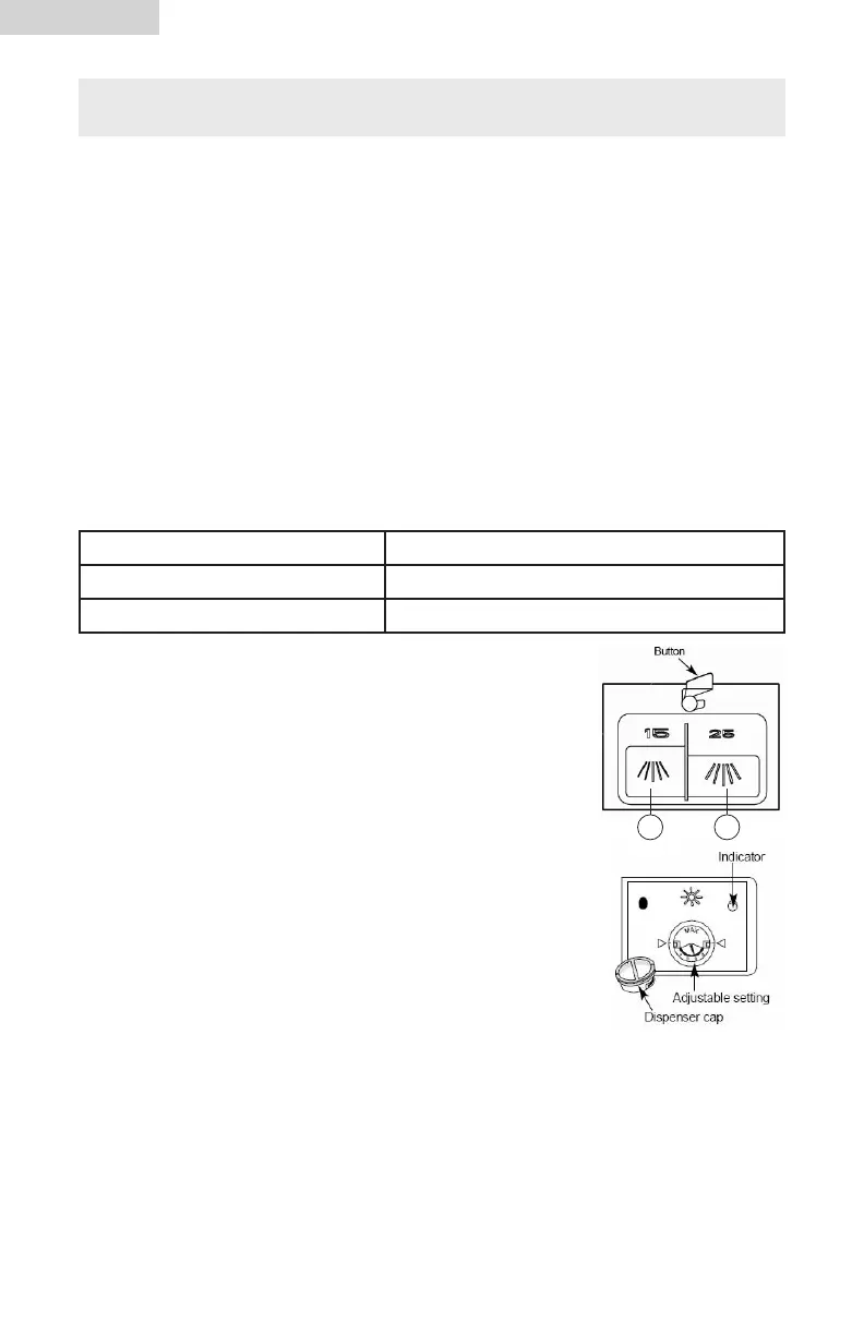 also fill the open cup on the dispenser lid.Use the information in the table