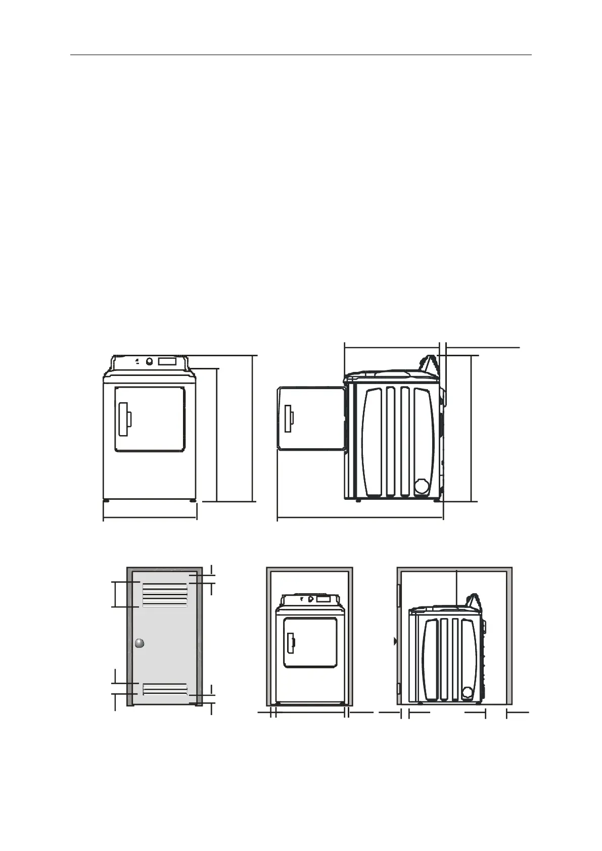 weather. The dryer area must be kept clear of combustible materials, gasoline, and other