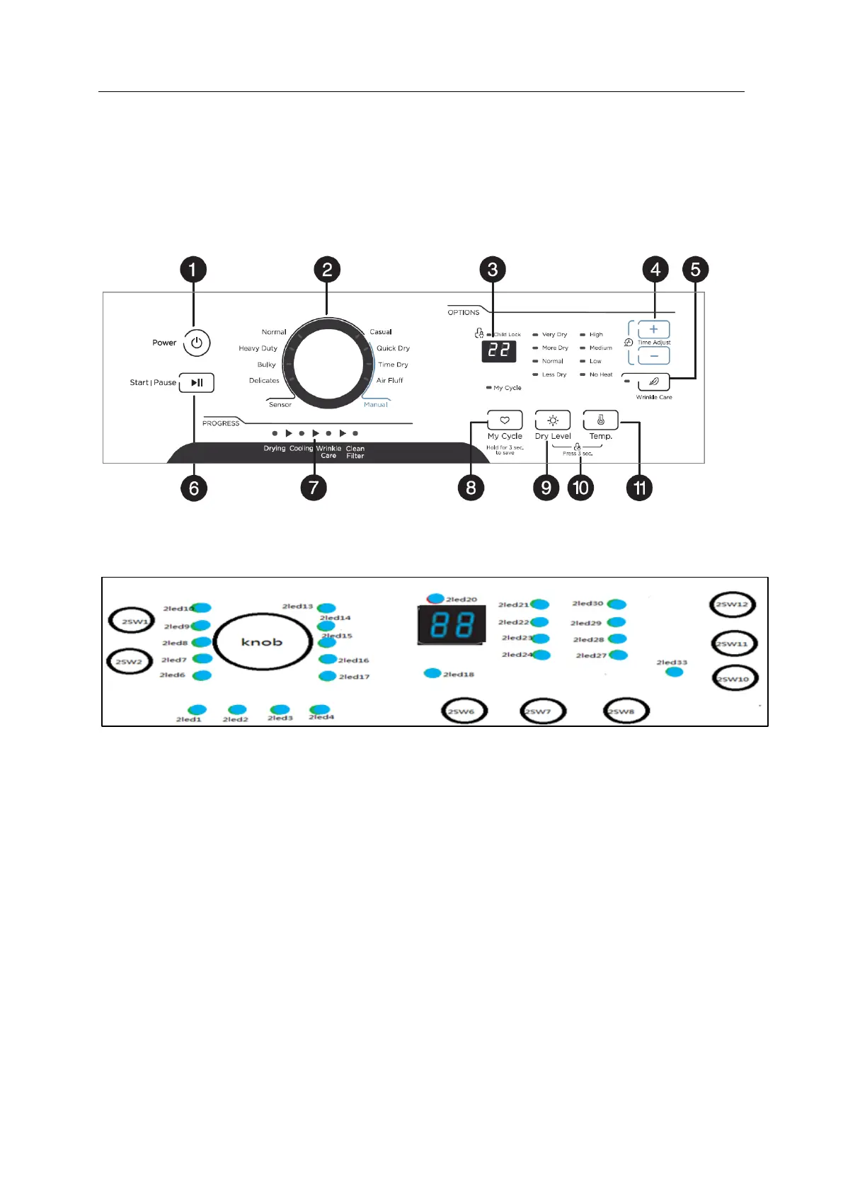 -Press [Dryness], screen will show 44, L4(2LED26~2LED30 ) light up;