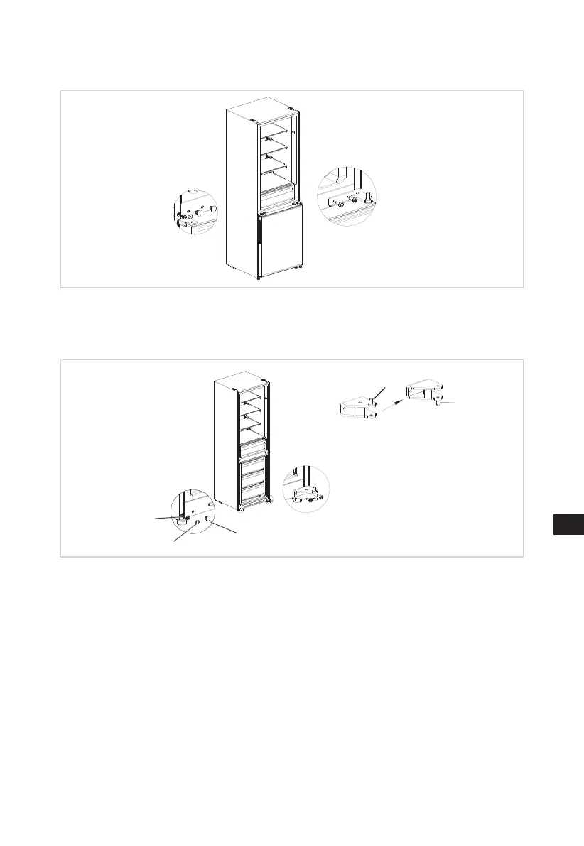 urmă, instalaţi ţeava manşonului balamalei superioare pe uşa răcitorului în orificiul de
