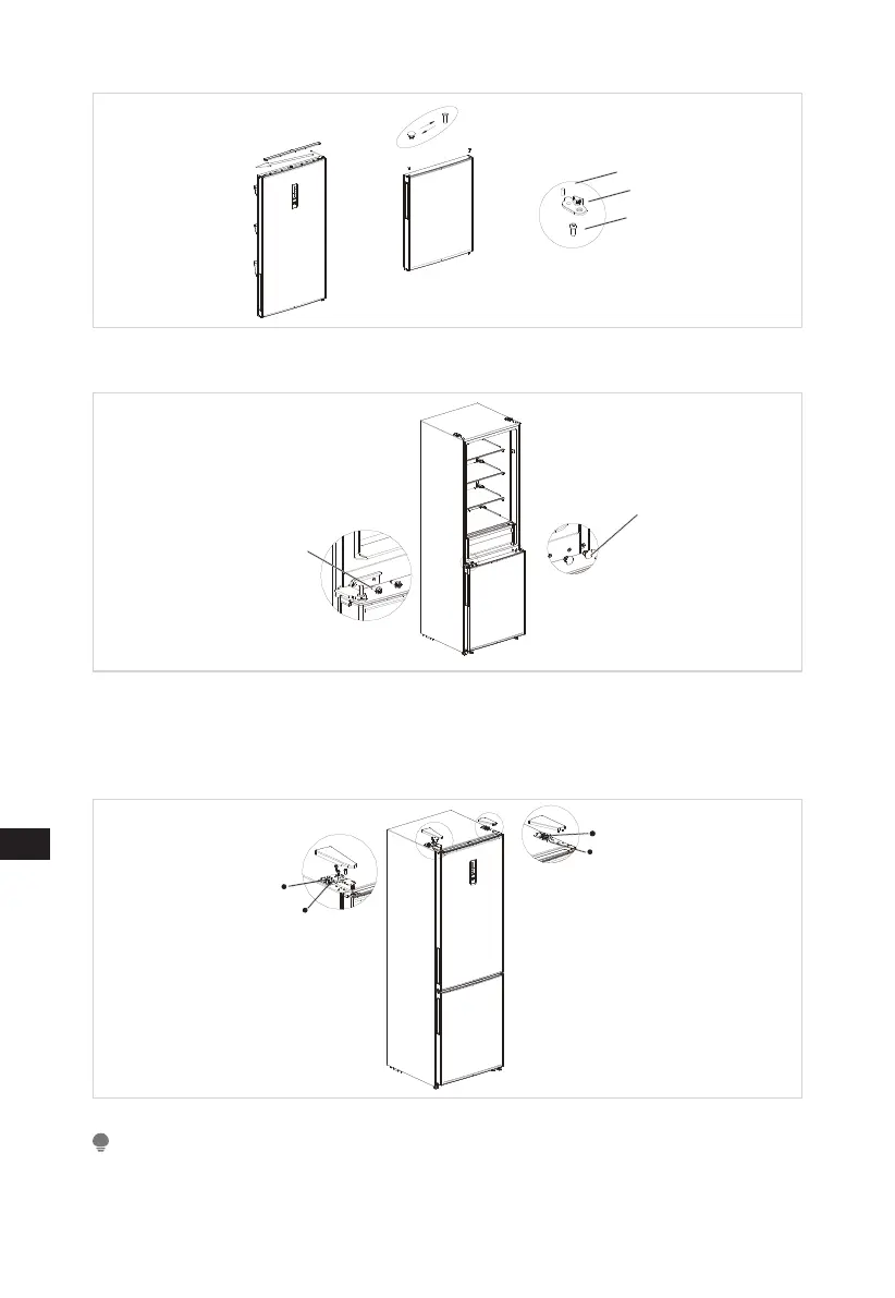 6. Поставете вратата на фризера върху долната панта, монтирайте средната панта,