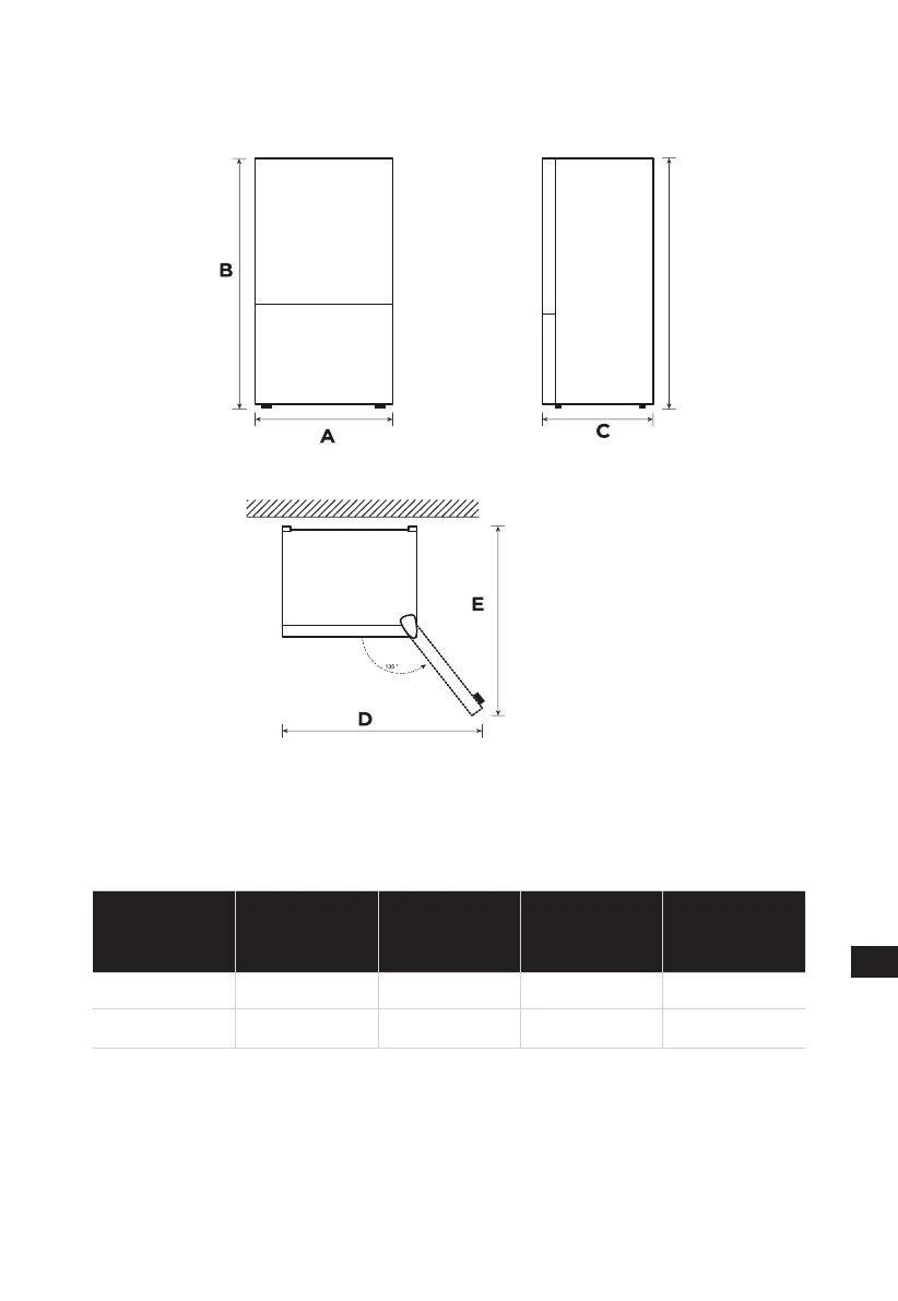 Schéma požadavků na prostor (při otevřených a zavřených dveřích)