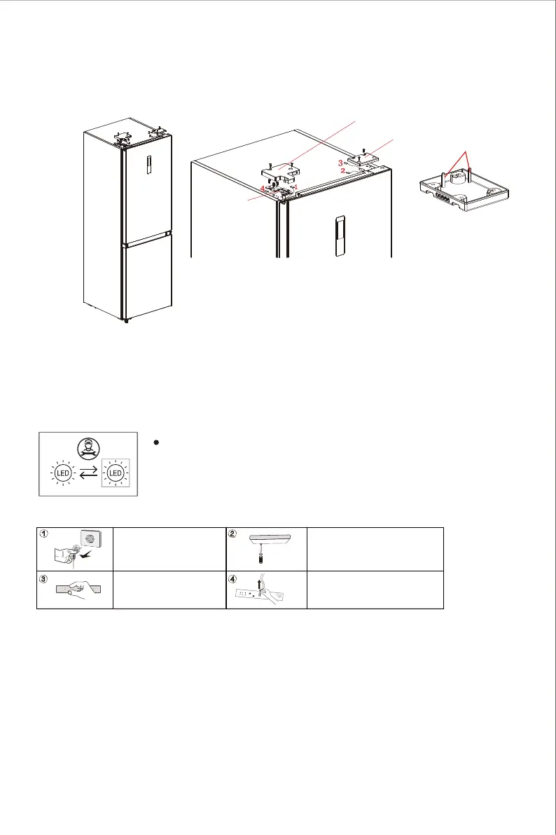 ilmoq ustiga qo'ying va yuqori chap ilgakni o'rnating. Sovutgichning 4 yuqori signal chizig'ini eshik korpusining 1