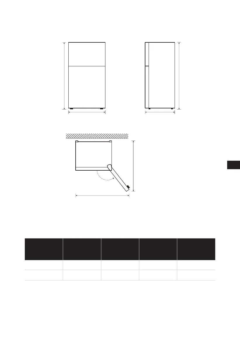 Diagrama spațiului necesar (când ușa este deschisă și când ușa este închisă)