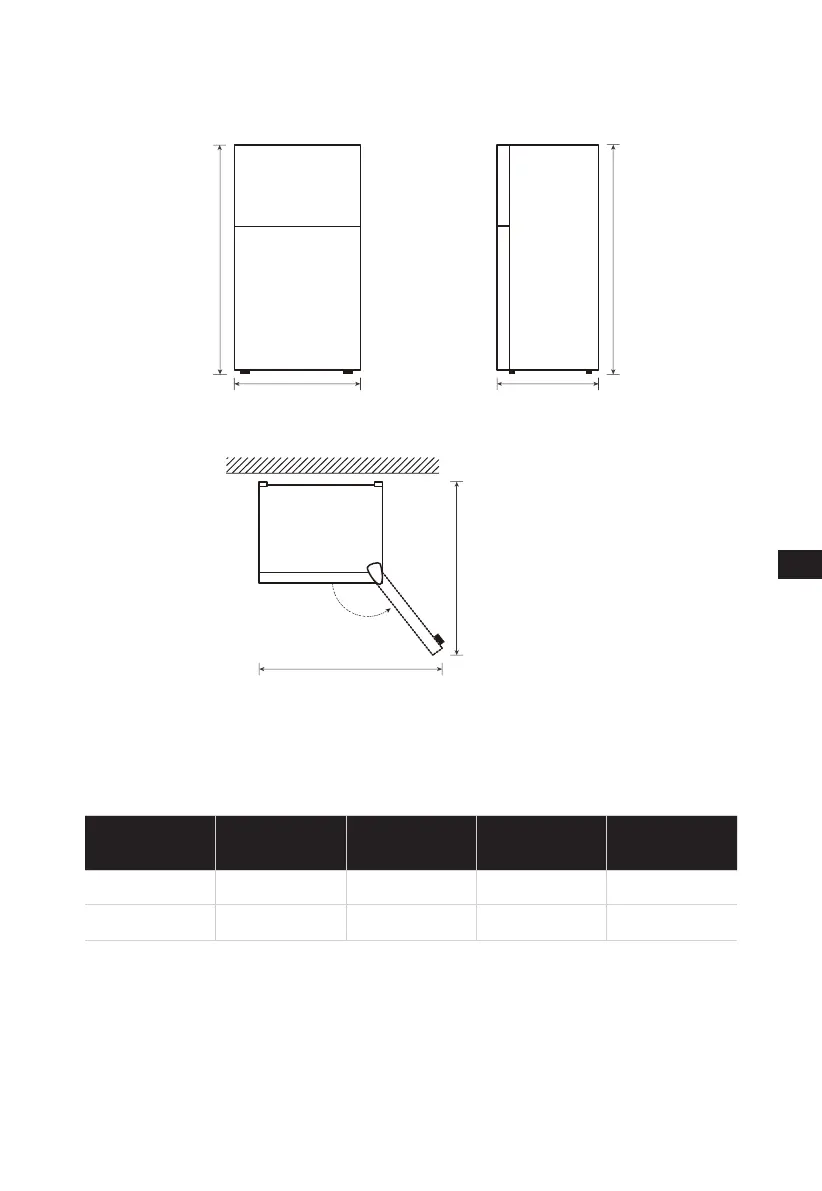Diagramm zum Freiraumbedarf (bei geöffneter und geschlossener Tür)