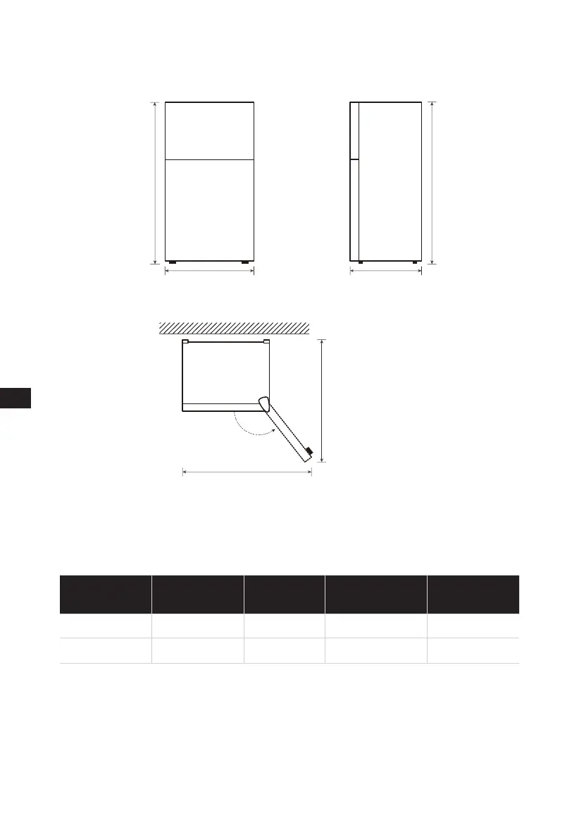 Διάγραμμα απαιτούμενου χώρου (όταν η πόρτα είναι ανοιχτή και όταν η πόρτα είναι κλειστή)