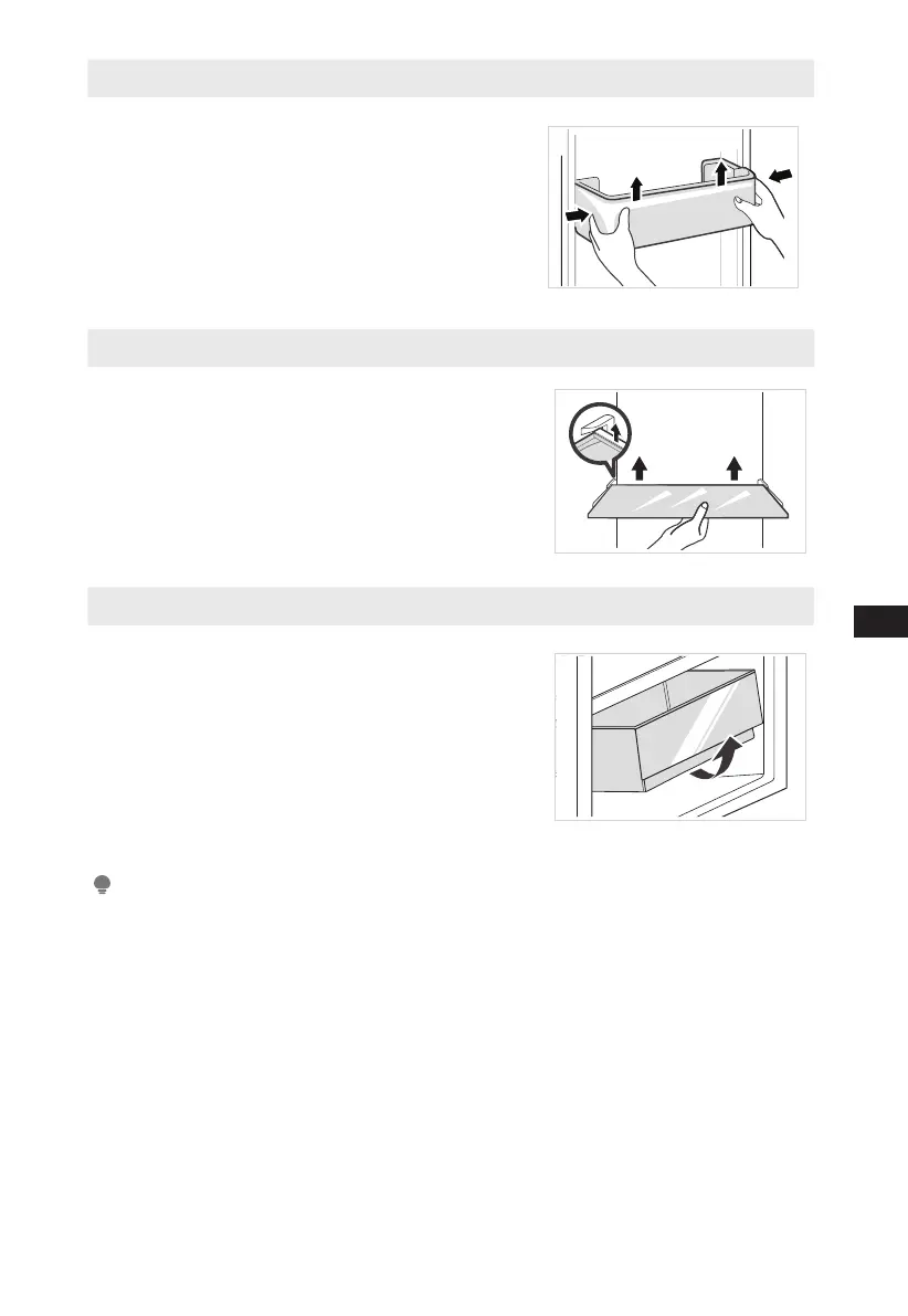 pakelti lentynas į viršų, tada galėsite jas išimti.