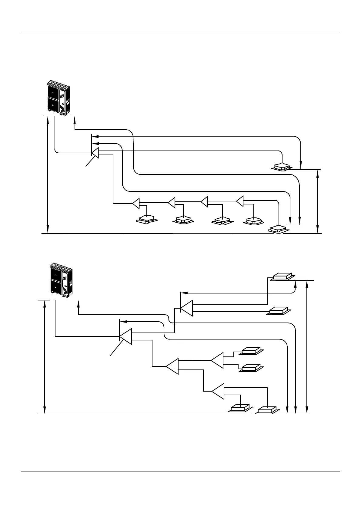Note: When the total equivalent piping length of liquid + gas side is ≥90m, it must increase the size of air side main pipe. Besides,