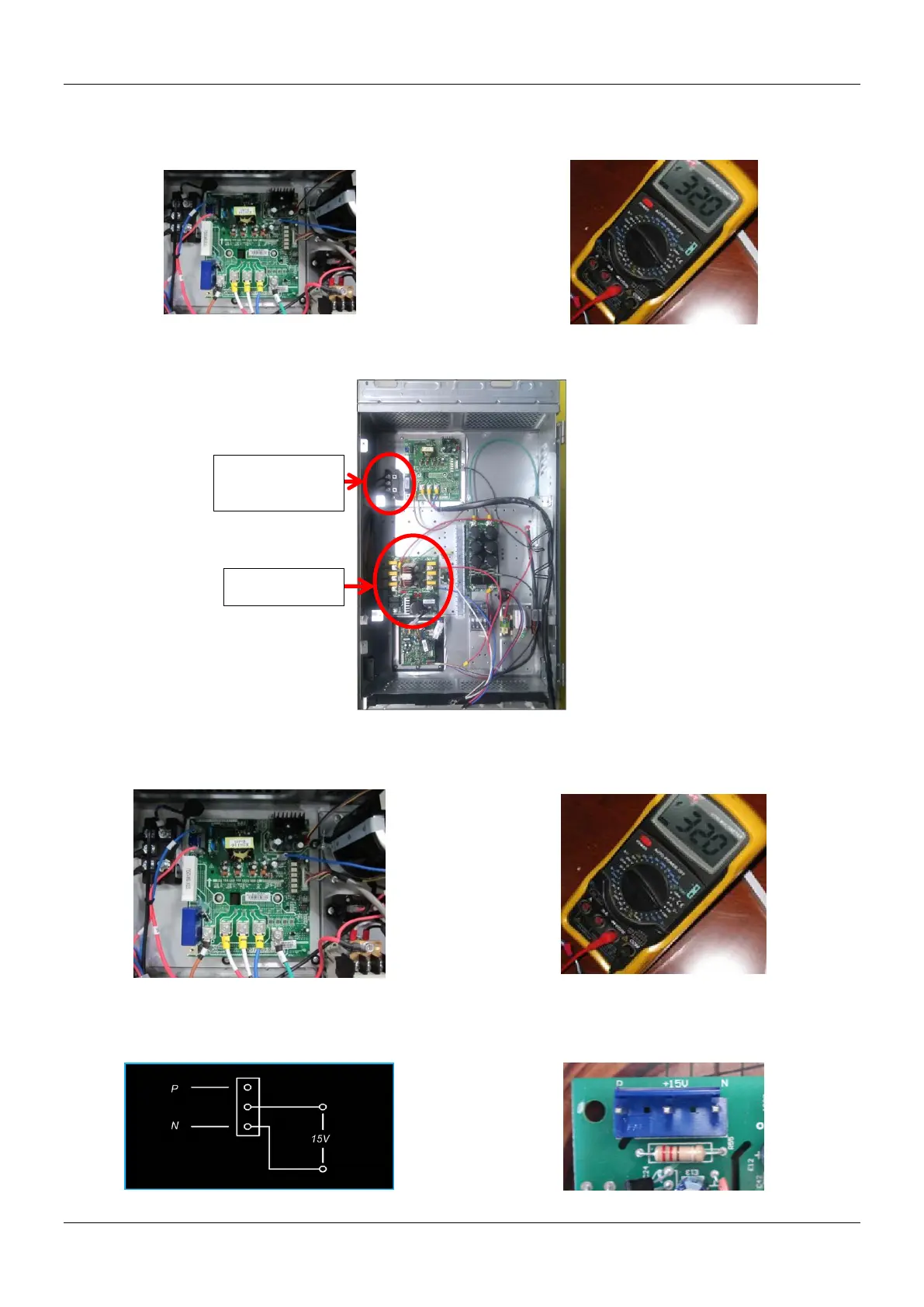 Step 2: Check the voltage between P+15V and N terminal on PCB, the normal value between P and N should