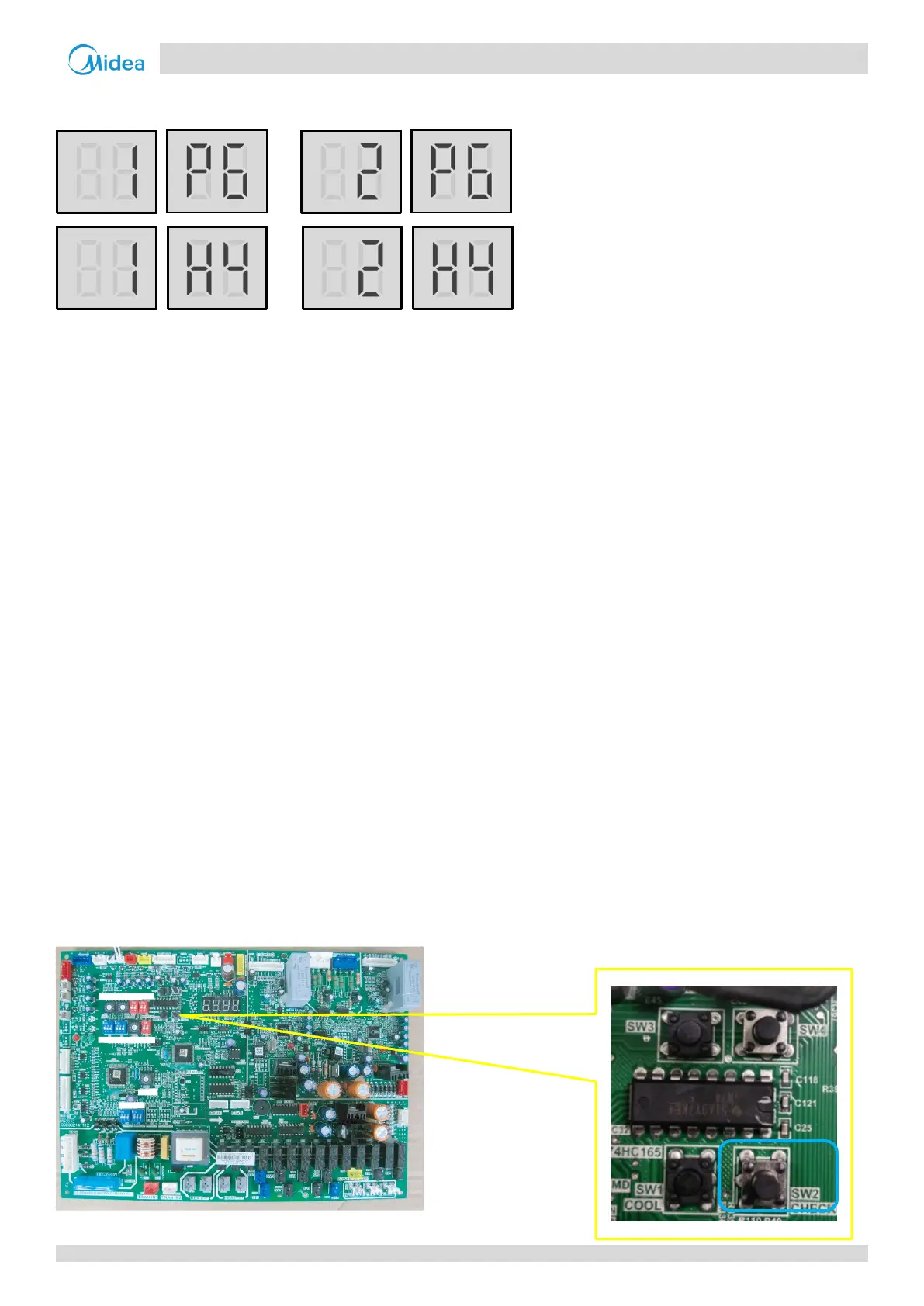 If an xH4 error code is displayed, press button SW2 every two seconds until one of the following specific error codes is