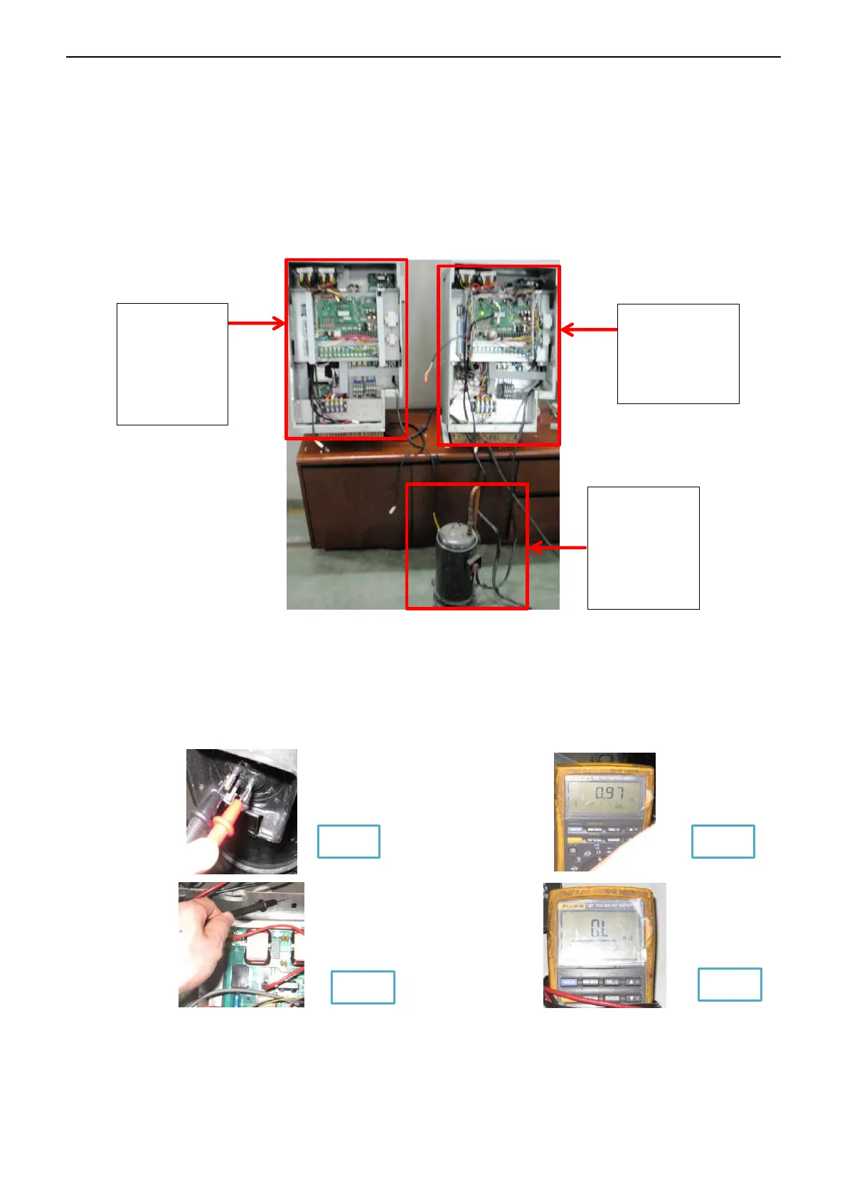 vacuum dry and charge 0.3kg~0.4kg R410A, and then connect the U,V,W terminals to control box B which is
