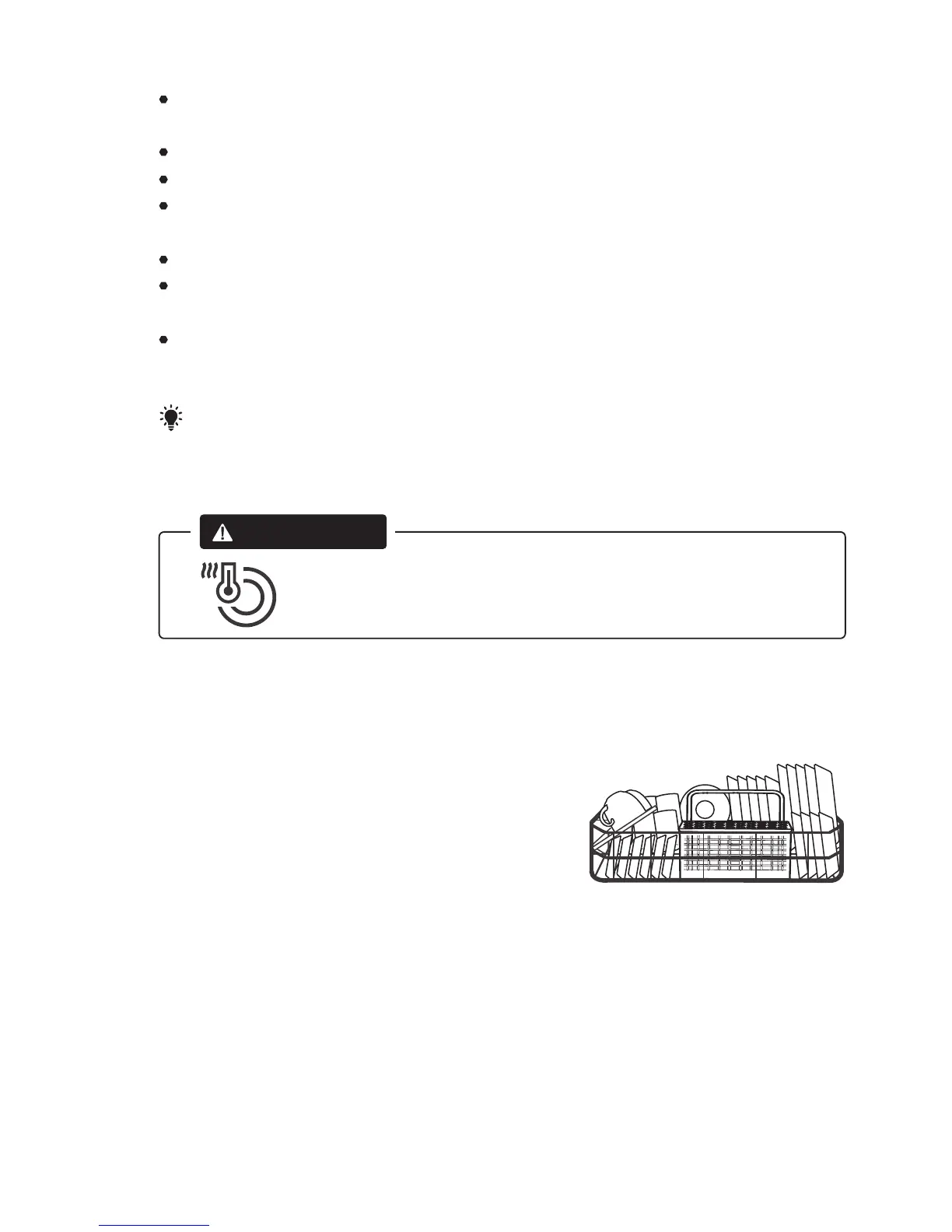 Load hollow items such as cups, glasses, pans etc. With the opening facing