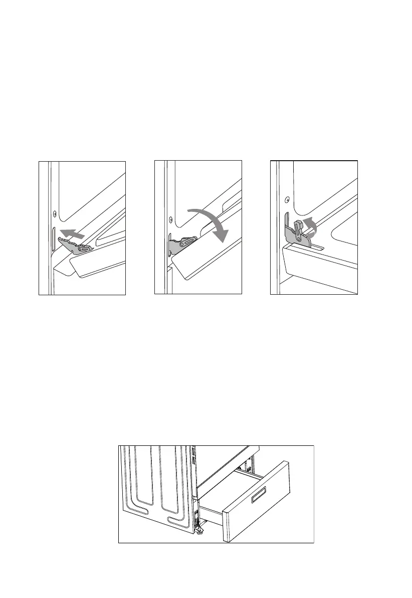 To reinstall the drawer, align the rails on the drawer with the slides on the