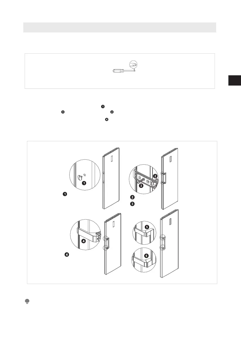 1. Remove the screw hole caps from the door, and use cross screwdriver
