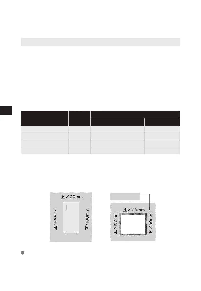 electricidade. Permita mais de 100 mm de distância de cada parede adjacente