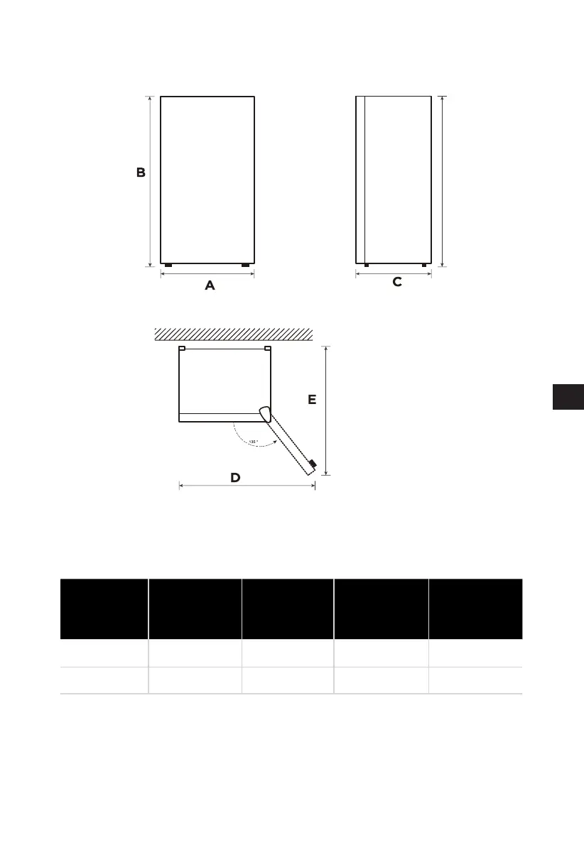 Schéma prostorových nároků (při otevřených a zavřených dveřích)