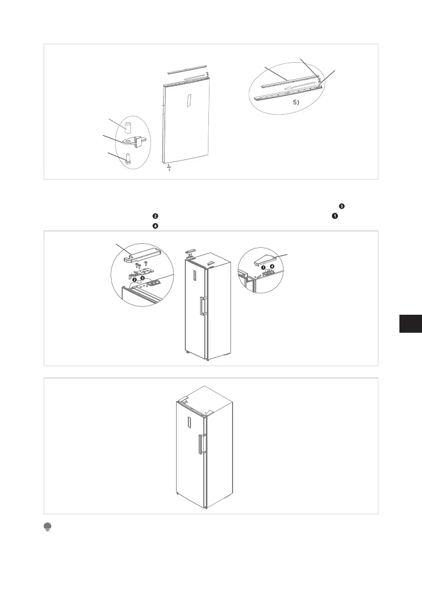 6. Helyezze az ajtót az alsó zsanérra, szerelje fel a bal felső zsanért, és vegye