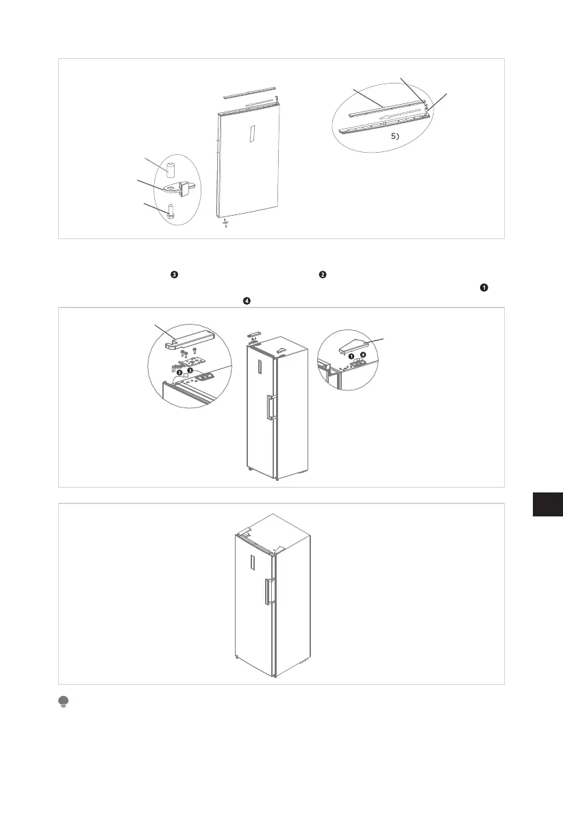 6. Поставите врата на доњу шарку, монтирајте горњу леву шарку и уклоните