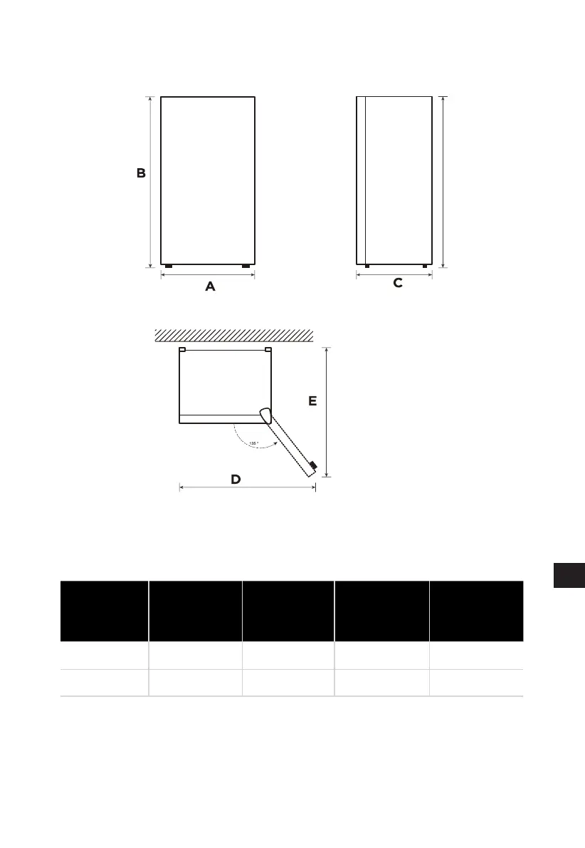 Shema potrebnega prostora (ko so vrata odprta in ko so vrata zaprta)