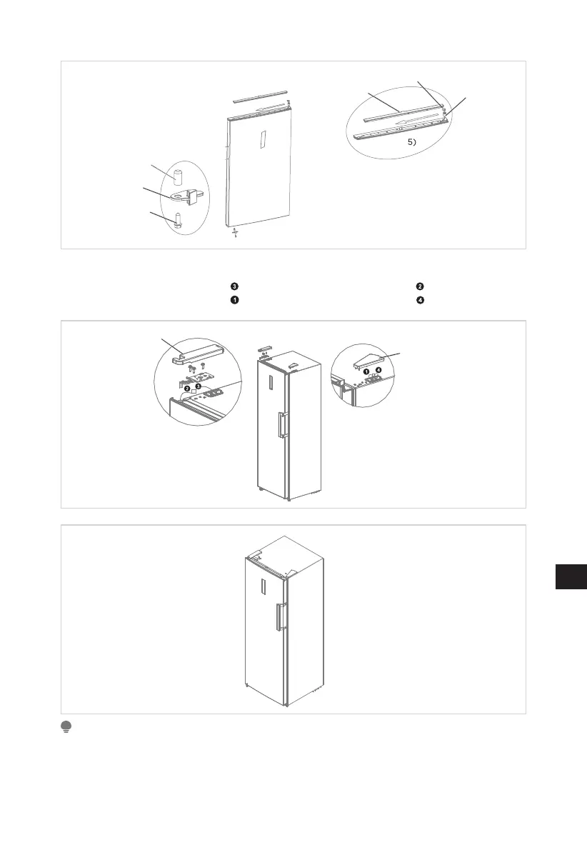 tečaja, postavite vrata na spodnji tečaj in pritrdite levi zgornji tečaj. Priključite