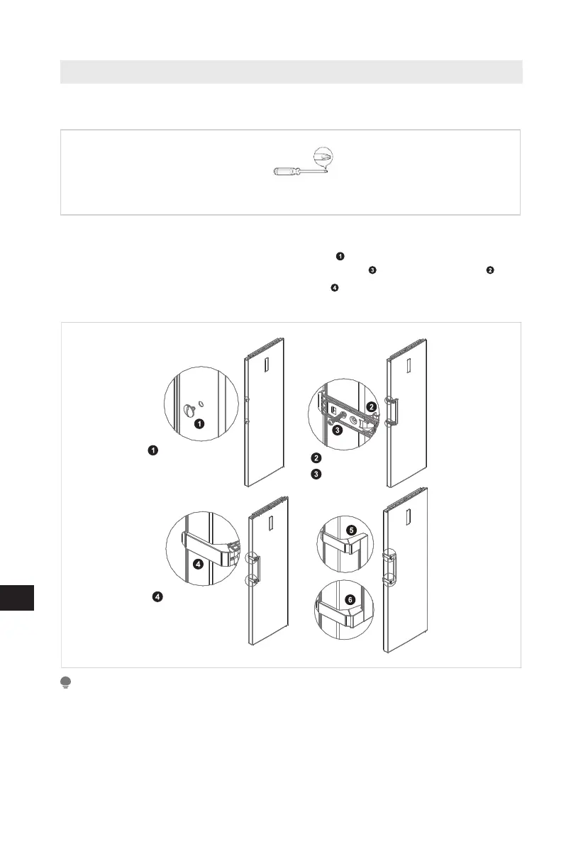 1. Îndepărtați capacele de la găurile șuruburilor de pe ușă, apoi folosiți o