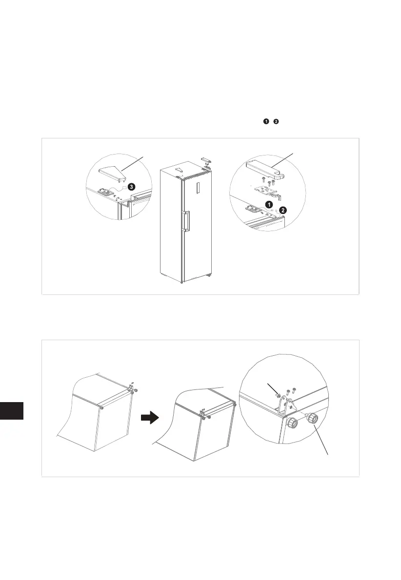 asamblați întregul ansamblu al balamalei pe cealaltă parte a frigiderului.