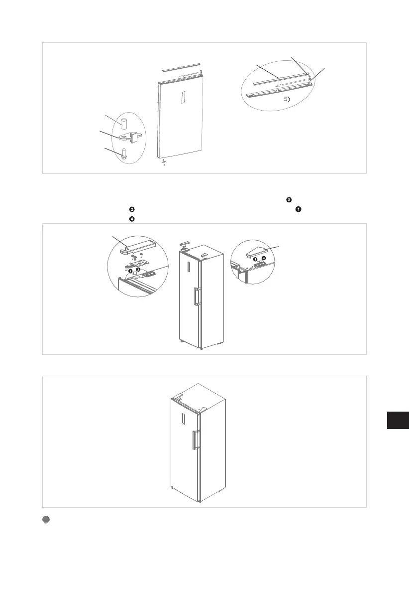 pachetul cu accesorii, așezați ușa pe balama inferioară și montați balamaua